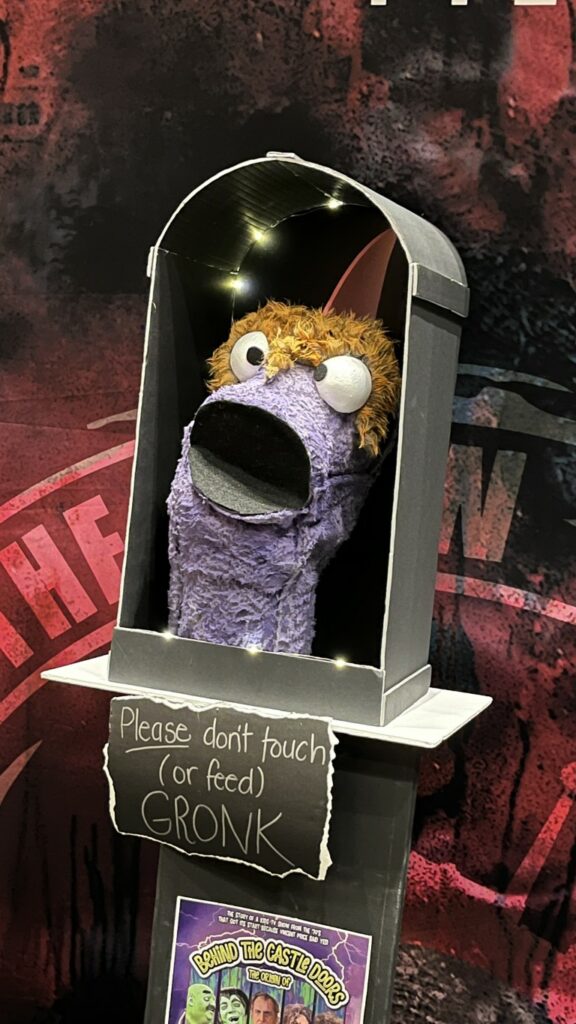 Photos below of some swag giveaways at the screening. Some plushes of Igor and The Count. A couple of the original writers of the show and other various show props.
